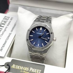 ساعة أوديمار بيغيه رويال أوك بتصميم فاخر، هيكل ستانلس ستيل ، نقوش مميزة. تعمل بحركة كوارتز (بطارية)، وتتميز بعقارب ومؤشرات مضيئة مع عرض للتاريخ. جودة كوبي ون عالية وتأتي مع علبة وإكسسوارات فاخرة.
