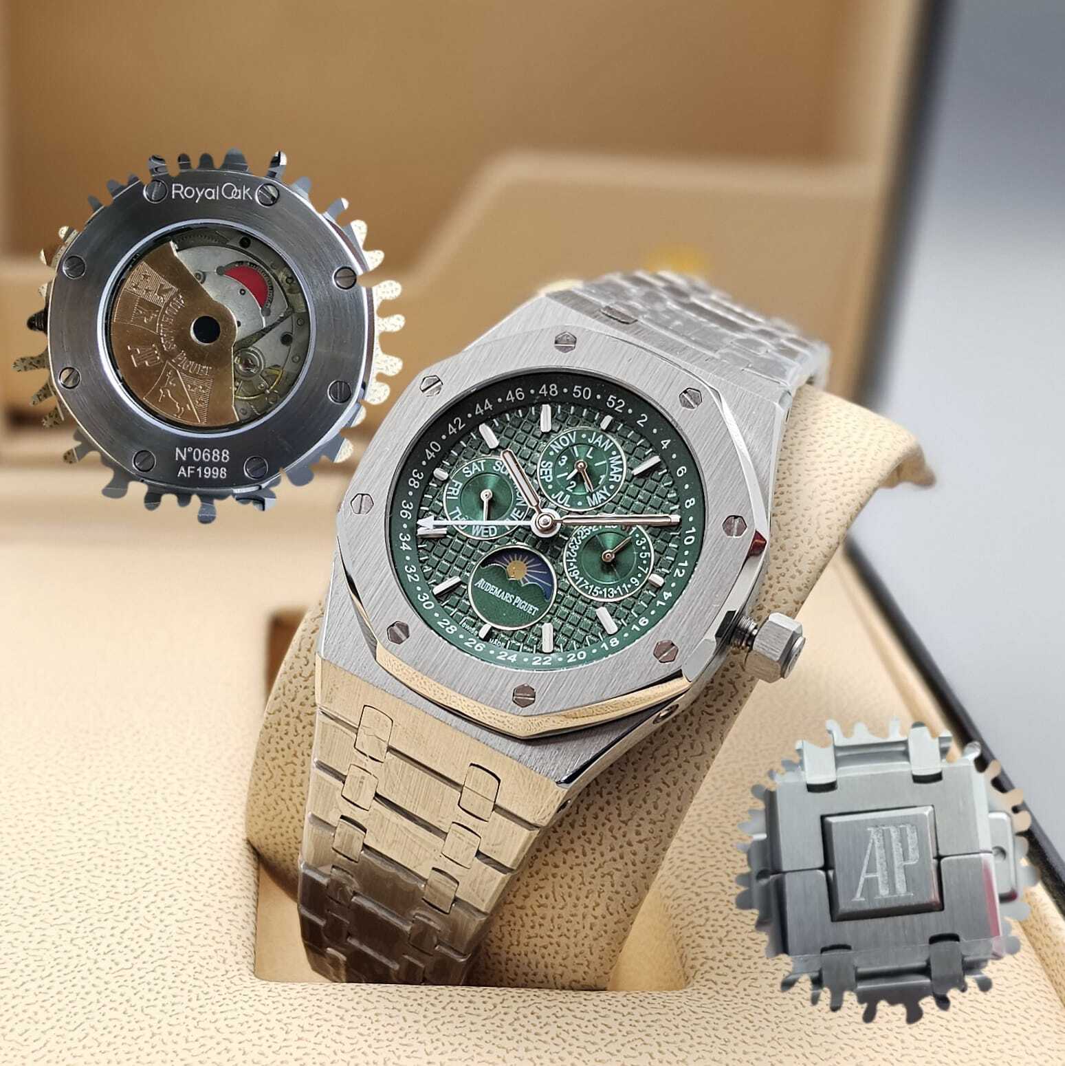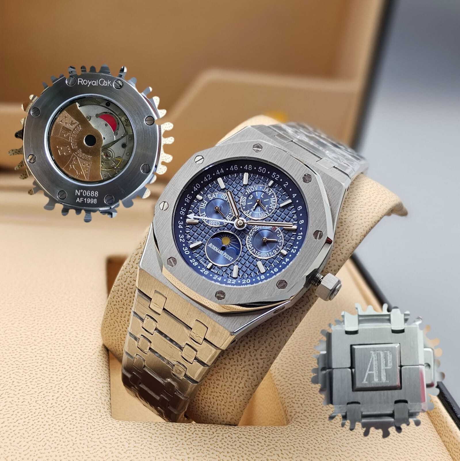 ستمتع بلمسة من الفخامة مع ساعة أوديمار بيغه رويال أوك. تصميمها الأيقوني وميكانيكيتها المعقدة تجعلها تحفة فنية حقيقية. إنها أكثر من مجرد ساعة، إنها استثمار في الأناقة والتراث. المميزات: تصميم أيقوني: شكل مثمن مميز وسوار متكامل. حركة ميكانيكية معقدة: ت