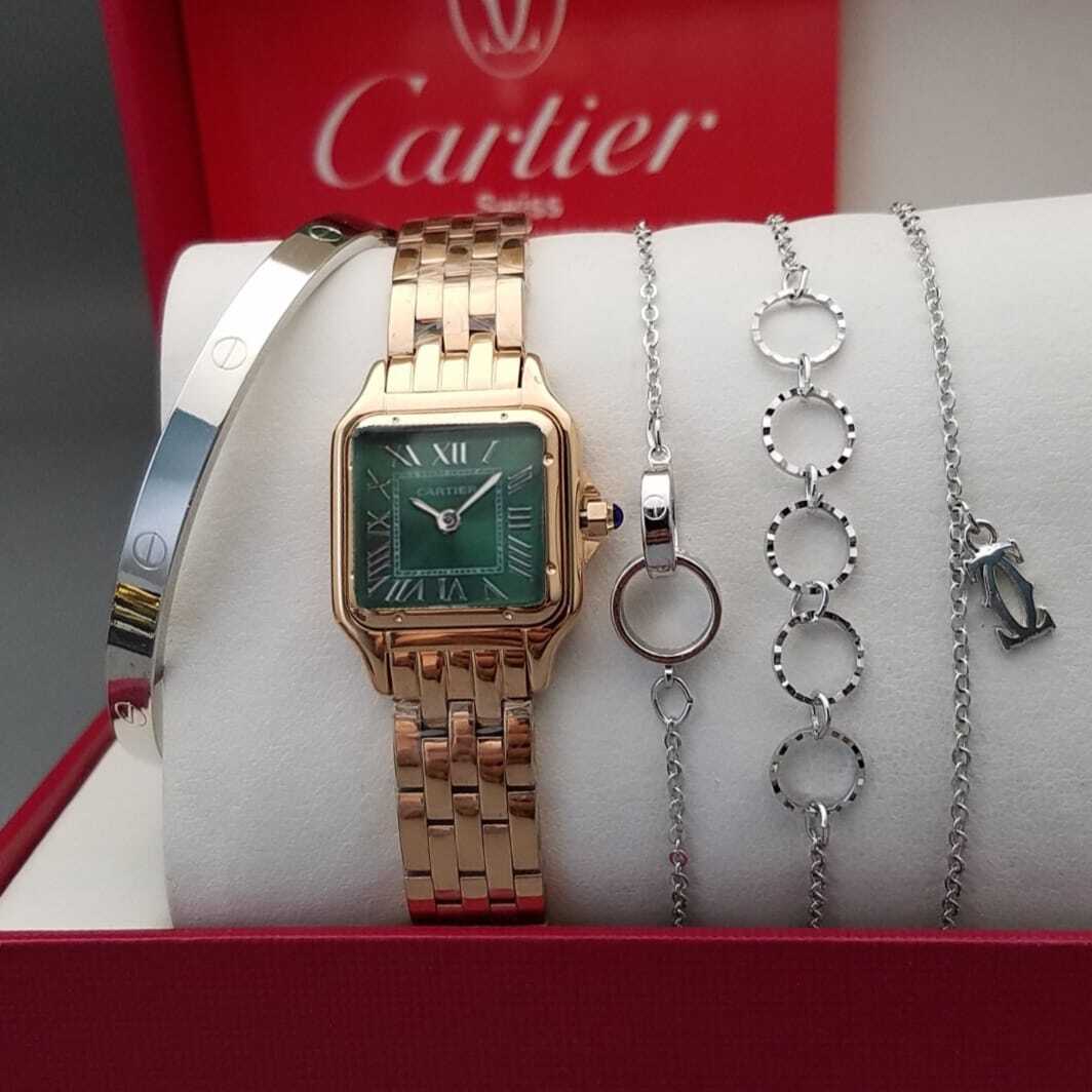 تصميم أنيق يبرز فخامة التفاصيل، هيكل ستانلس ستيل لامع، ميناء اخضر بأرقام رومانية وسوار متناسق بإغلاق محكم. خيار مثالي لإطلالة راقية تجمع بين البساطة والفخامة