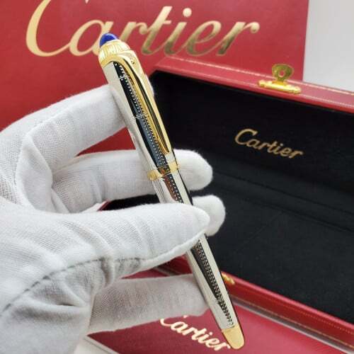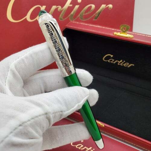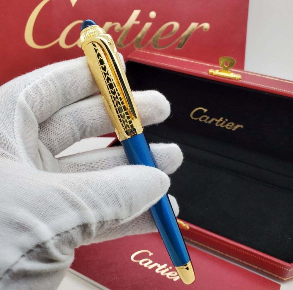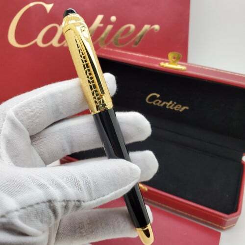 قلم كارتير الفاخر بتصميم أنيق من معدن فاخر بلمسات راقية. الغطاء مزخرف بنمط هندسي دقيق يمنحه طابعًا مميزًا يعكس الفخامة والإبداع. جودة عالية وتقفيل متقن يجعلانه الخيار المثالي لأصحاب الذوق الرفيع.