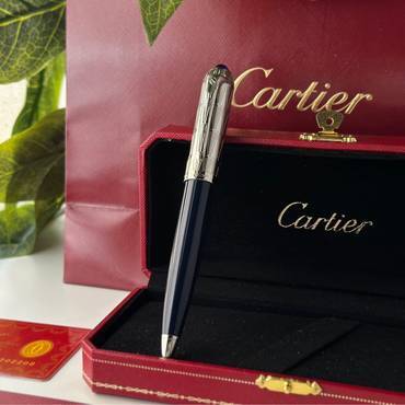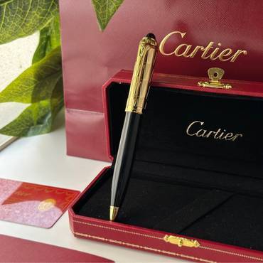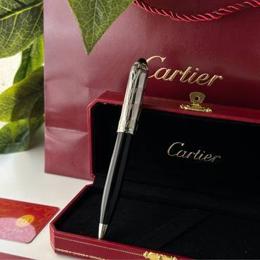 قلم كارتييه باشا الفاخر، رمز الأناقة والرقي. مصنوع سالتسيل مع لمسات من حجر اسود أنيق في الأعلى، يمنحك تجربة كتابة سلسة وفخامة لا تضاهى. إضافة مثالية لهواة الاقتناء المميز والذوق الرفيع.