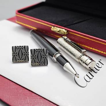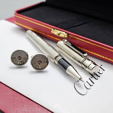 قلم كارتير الفاخر بتصميم يجمع بين الكلاسيكية والحداثة، بهيكل أنيق من الفضي المحفور وتفاصيل سوداء فاخرة. لمسة من الإبداع تعكس الفخامة والرقي، ليكون الخيار المثالي لأصحاب الذوق الرفيع وعشاق التميز.