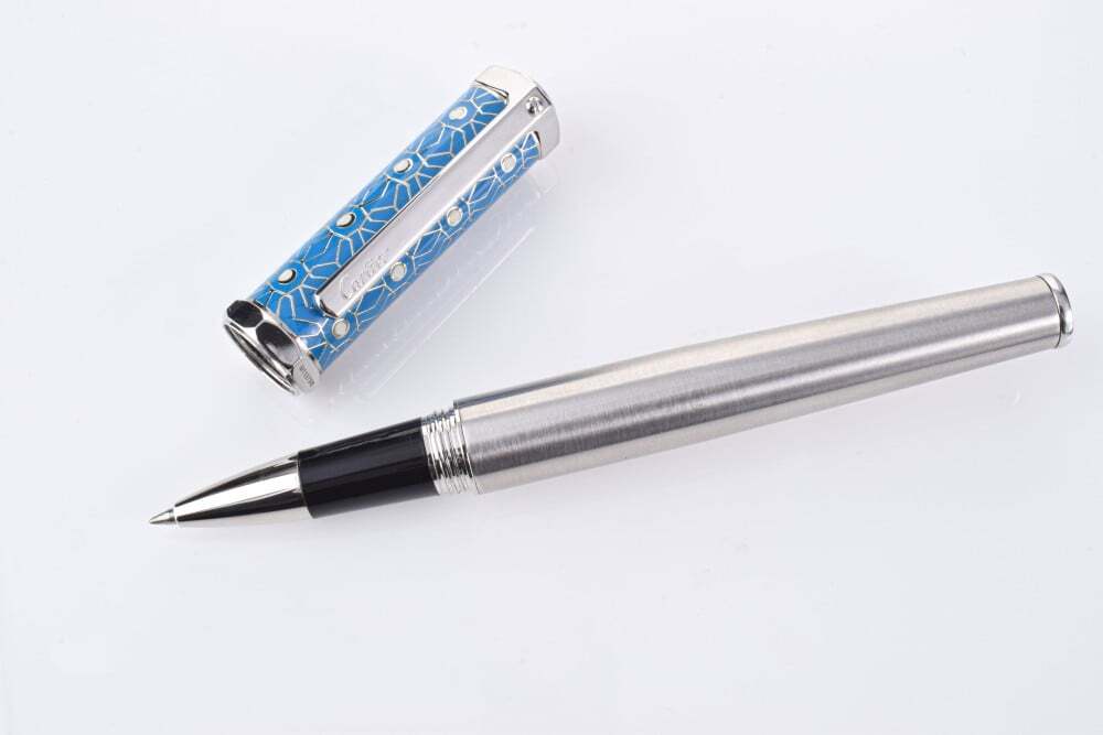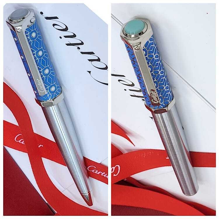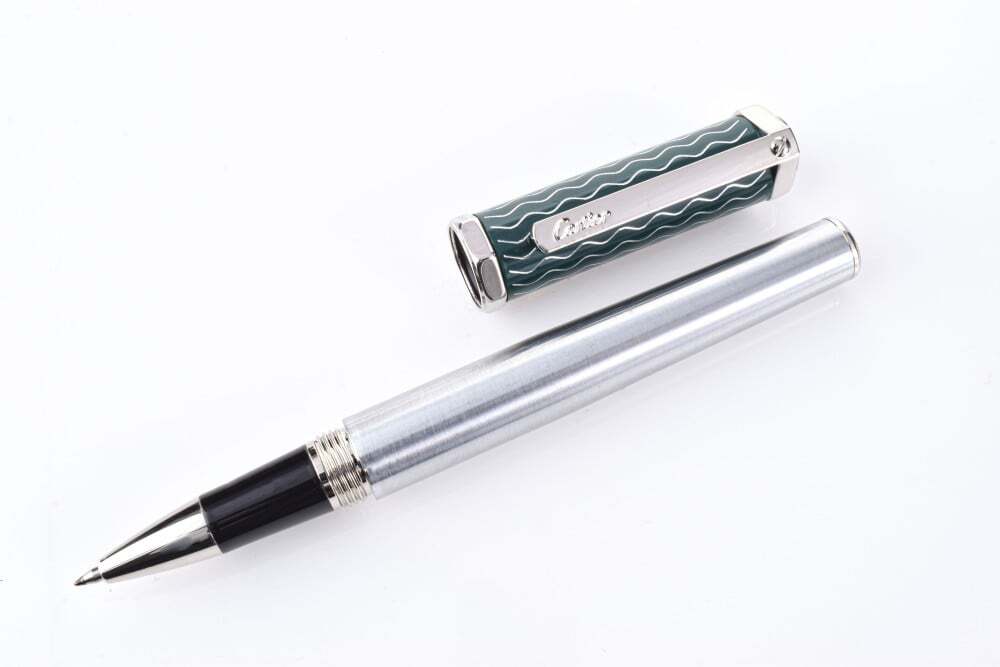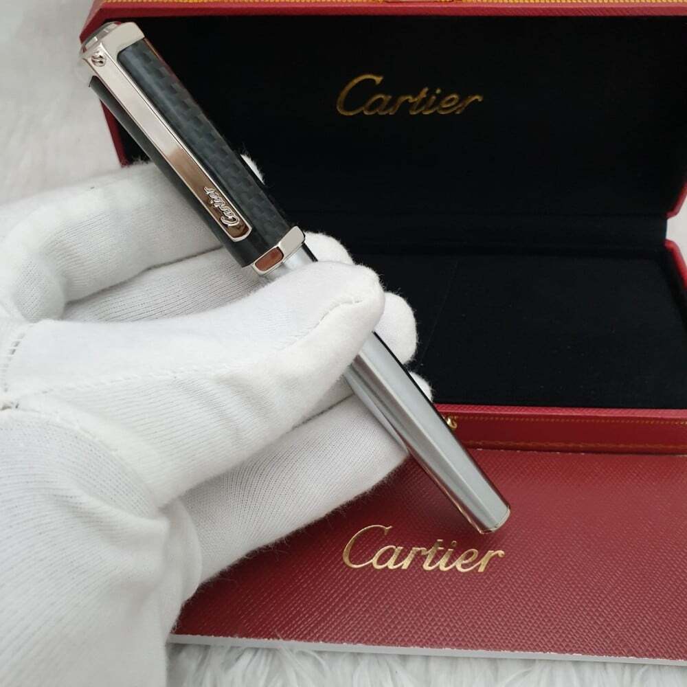 تحفة راقية من كارتييه! قلم فاخر بcolor الأخضر العميق، بتصميم أنيق ونقوش هندسية فريدة على الغطاء. يجمع بين الحرفية العالية والفخامة، ليمنحك تجربة كتابة سلسة وأداء مثالي. إضافة رائعة لهواة التميز والرقي.