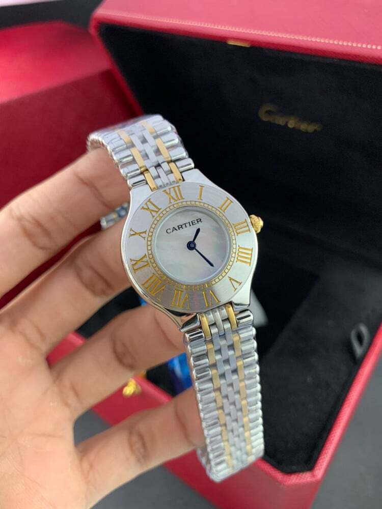 This Cartier watch is distinguished by combining exceptional hand craftsmanship with luxurious materials, starting from its precisely polished case to the elegant dial featuring classic Roman numerals or clear modern markers. The gracefully designed bracelet adds a touch of absolute sophistication, whether made of pure gold, stainless steel, or premium leather, ensuring superior comfort and a perfect fit.
