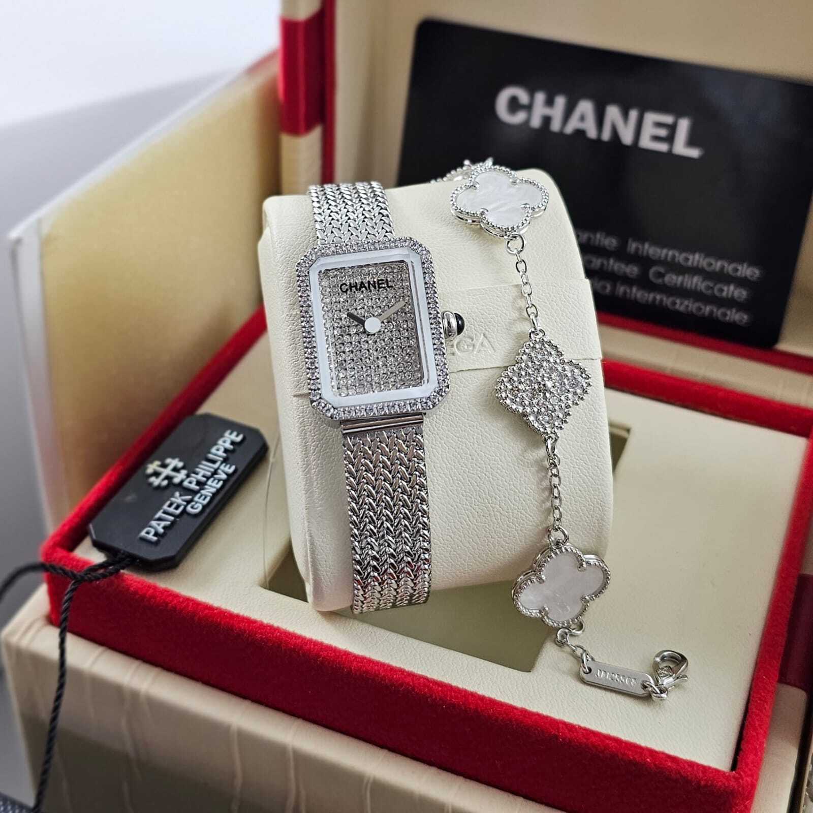 تألقي بأناقة خالدة مع ساعة CHANEL الفاخرة، بتصميم راقٍ يجمع بين الميناء الأسود الأنيق والإطار المرصع بفصوص براقة. سوار شبكي فخم وقفل محكم لراحة مثالية. جودة كوبي ون عالية، مرفقة بعلبة فاخرة وكامل الملحقات لتجربة مترفة لا ت