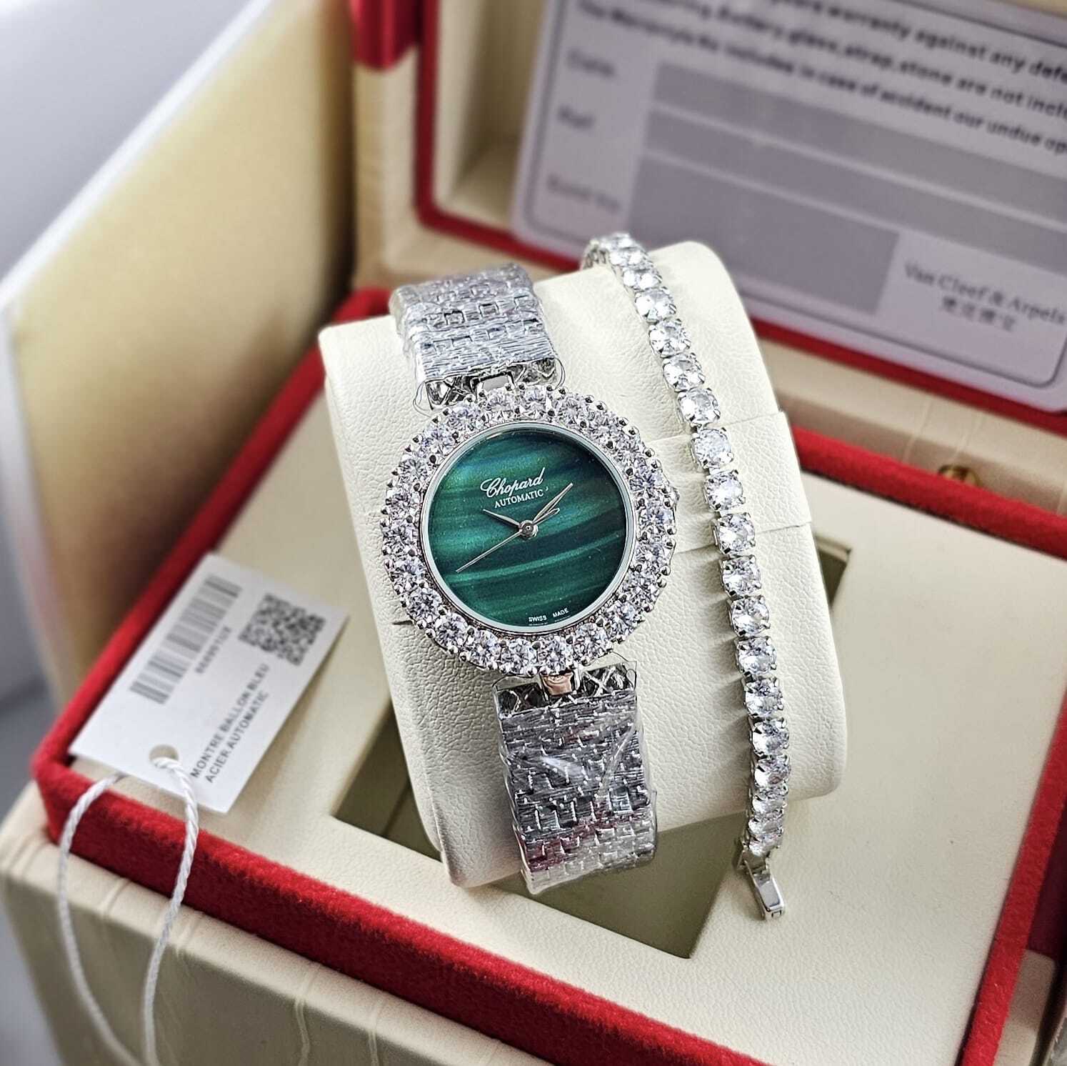 تألقي مع ساعة فاخرة بتصميم أنيق، مرصعة بزوكون براقة تضيف لمسة من الفخامة. تأتي بهيكل متين وميناء أنيق بلون لؤلؤي والاخضر يعكس الذوق الراقي. سوار فاخر بإغلاق محكم لضمان راحة مثالية، مع ملحقات متكاملة لعرض استثنائي.