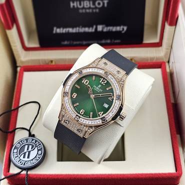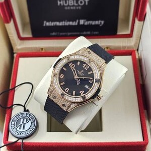 ساعة هوبلت الفاخرة بتصميم أيقوني يجمع بين الجرأة والأناقة. تتميز بإطار مرصع بالفصوص اللامعة وميناء راقٍ يعكس الفخامة العصرية. سوار مطاطي مريح لإطلالة أنيقة، مع جودة عالية وملحقات متكاملة لمظهر استثنائي.