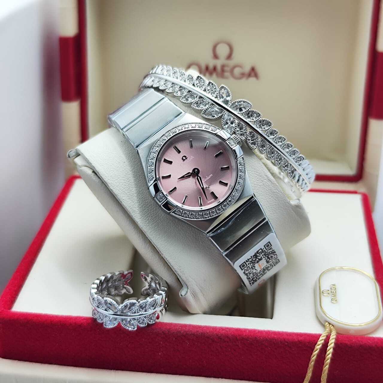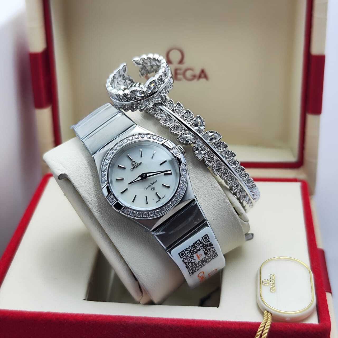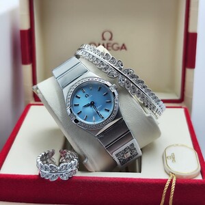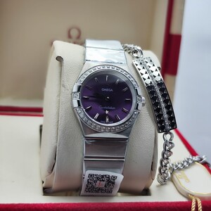 ساعة أوميغا كونستليشن بتصميم راقٍ يعكس الفخامة والأناقة، مرصعة بمؤشرات لامعة على ميناء أنيق، مع إطار محفور بالأرقام الرومانية، وسوار معدني متين يناسب جميع الإطلالات. مثالية لمحبي الدقة والتميز.