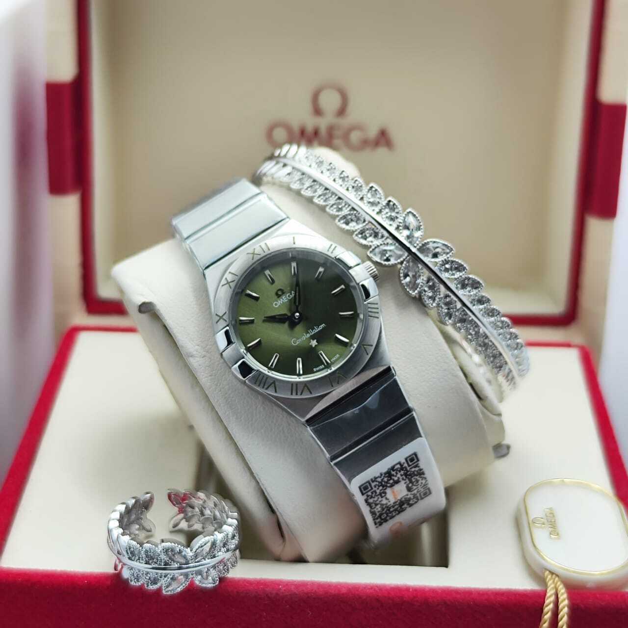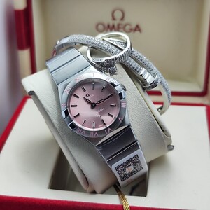 ساعة أوميغا كونستليشن بتصميم راقٍ يعكس الفخامة والأناقة، مرصعة بمؤشرات لامعة على ميناء أنيق، مع إطار محفور بالأرقام الرومانية، وسوار معدني متين يناسب جميع الإطلالات. مثالية لمحبي الدقة والتميز.