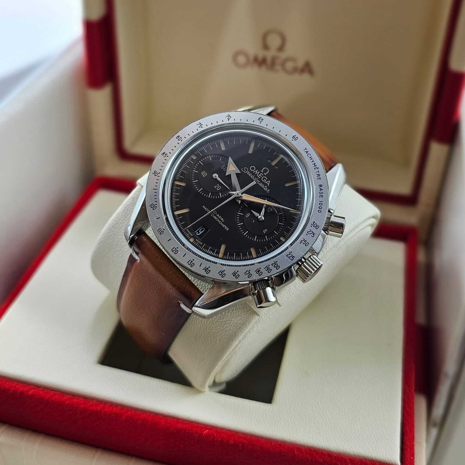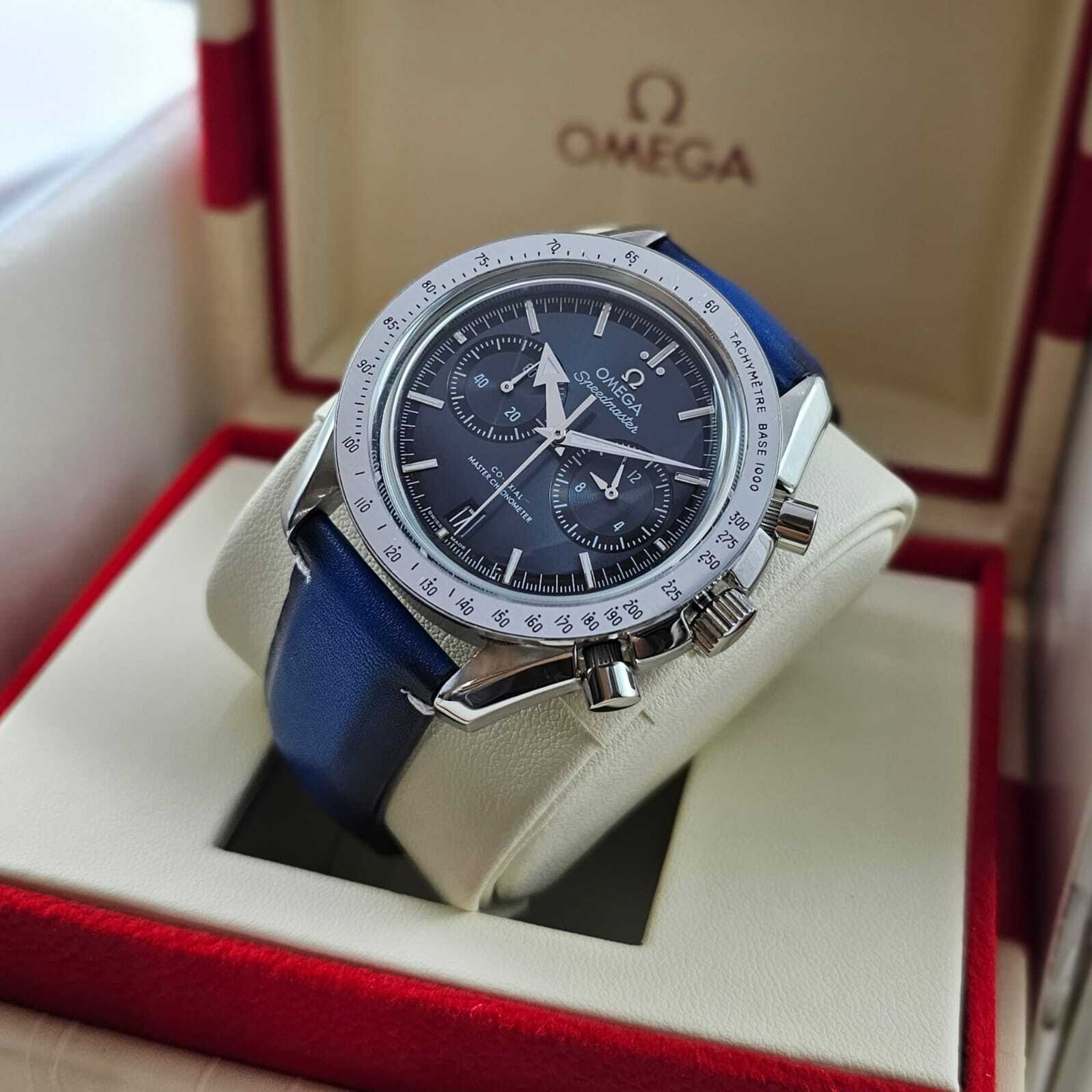 ساعة أوميغا سبيدماستر بتصميم أخضر فاخر يجمع بين الأداء والدقة مع مظهر عصري جذاب. تتميز بميناء أخضر أنيق مع مؤشرات مضيئة، وإطار تاكيمتر فضي، وسوار جلدي فاخر. مثالية للرجل الأنيق الذي يبحث عن التميز.