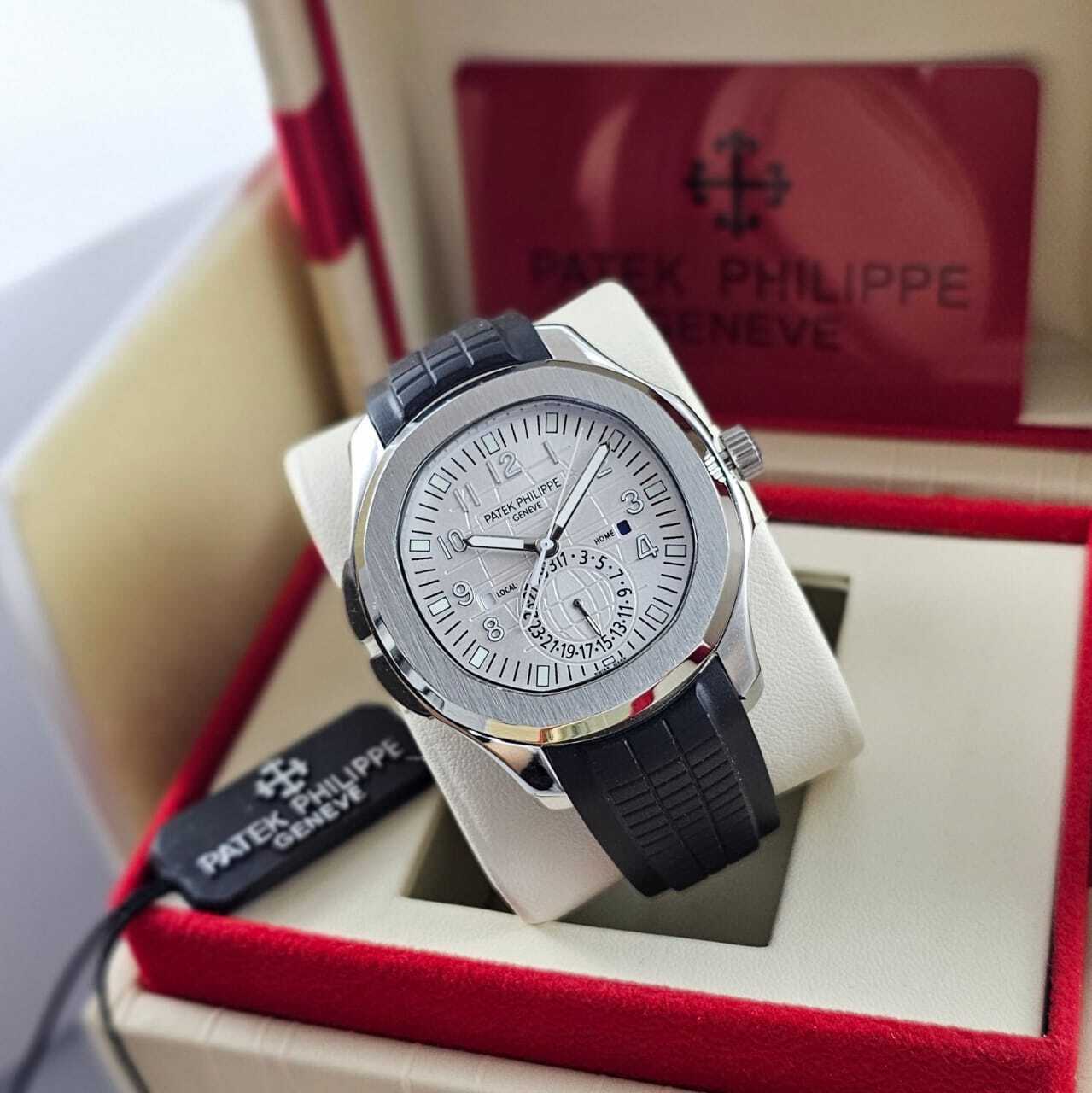 ساعة باتيك فيليب أكوانوت بإطار فاخر وميناء أنيق، بتصميم يجمع بين الفخامة والأداء العملي. سوار فاخر يعزز مظهرها الراقي، مع وظائف متعددة تجعلها خيارًا مثاليًا لمحبي الساعات الراقية.