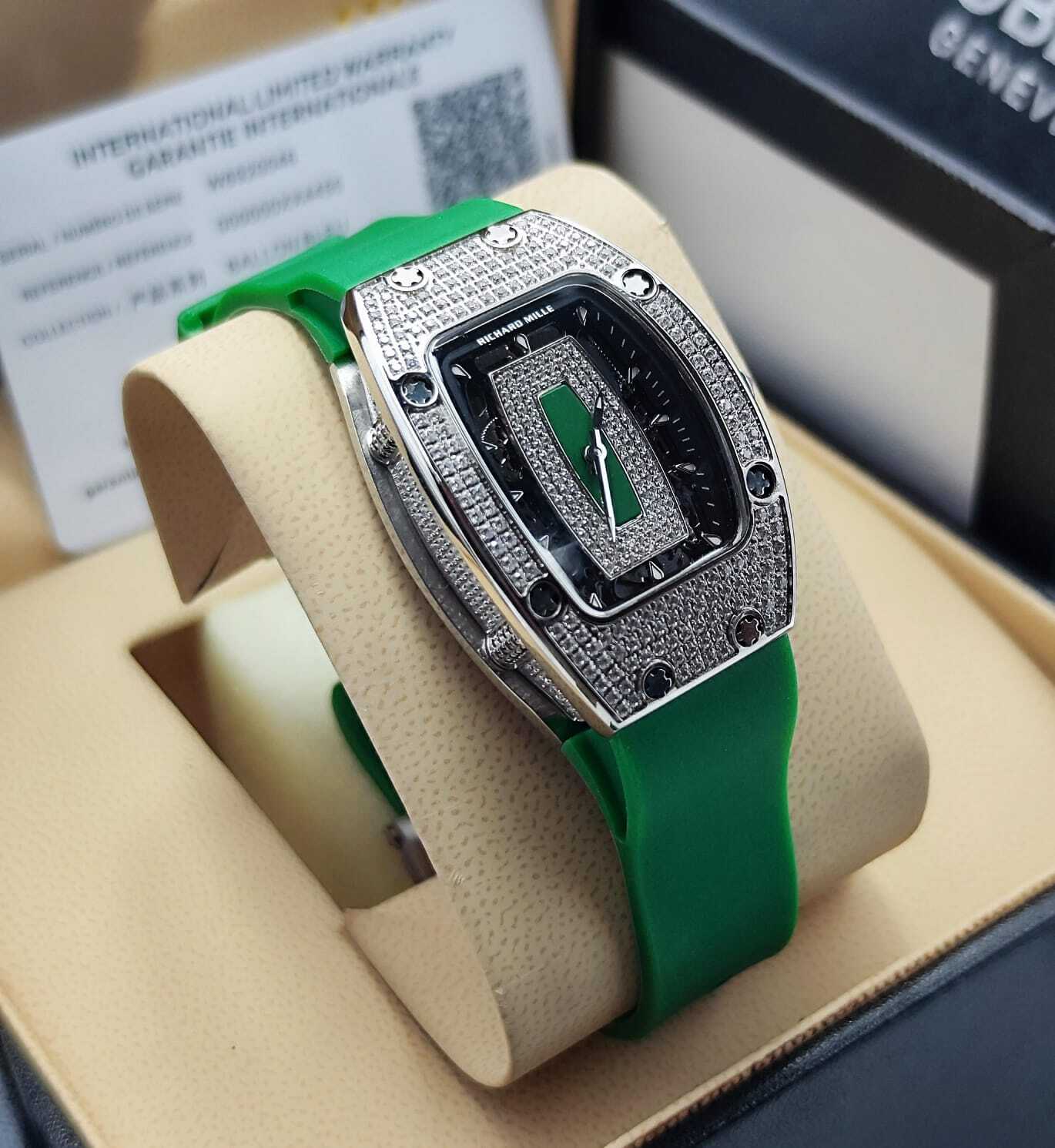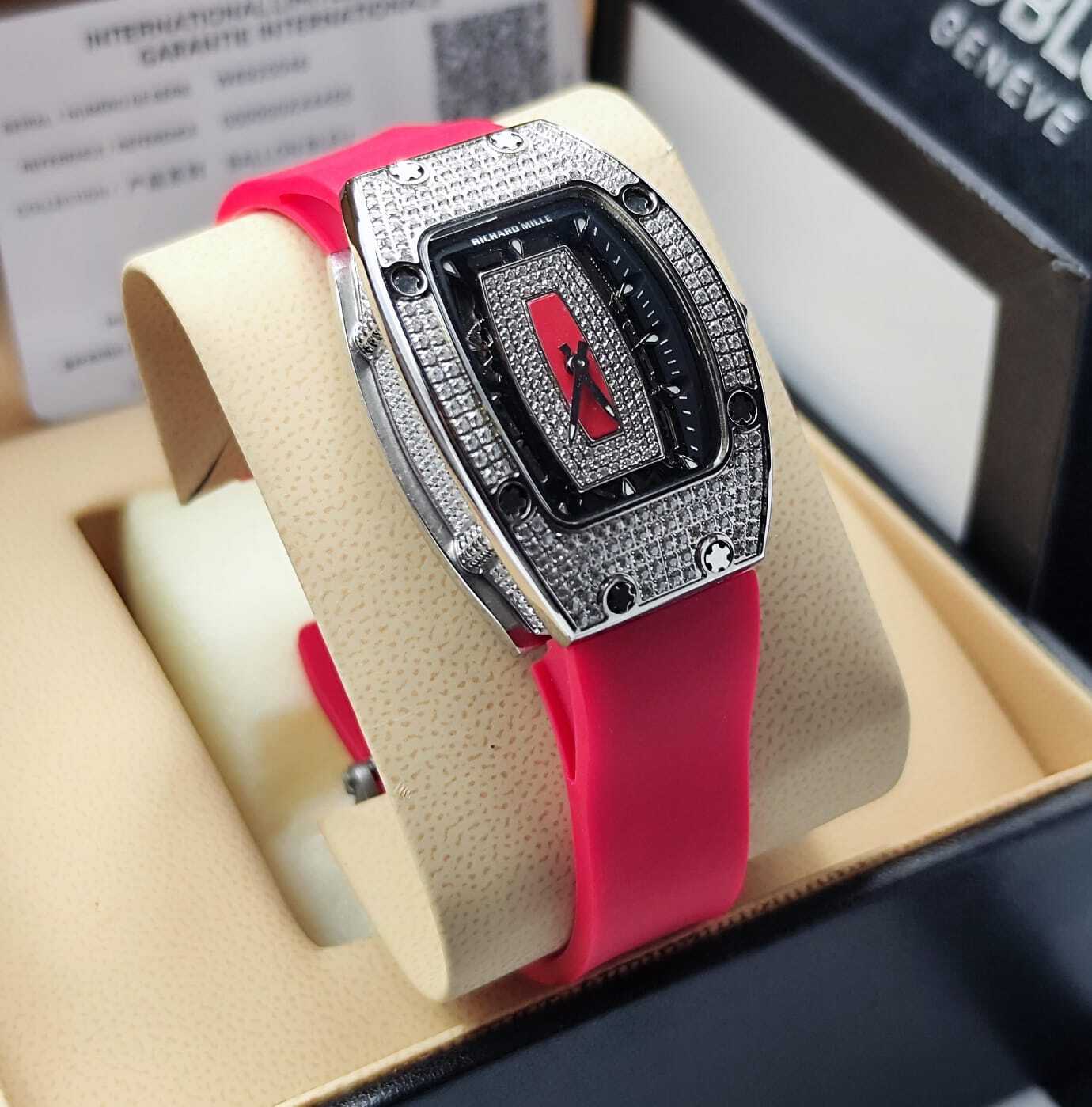 استمتع بإطلالة فريدة مع ساعة ريتشارد ميل الفاخرة، المصممة لمحبي التميز والأناقة الراقية. إطارها مزين مع تصميم جريء يجمع بين اللمسات العصرية والكلاسيكية. تأتي بميناء أسود فاخر مع تفاصيل بارزة ولمسات، وسوار سيليكون .