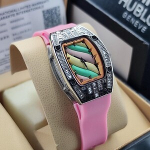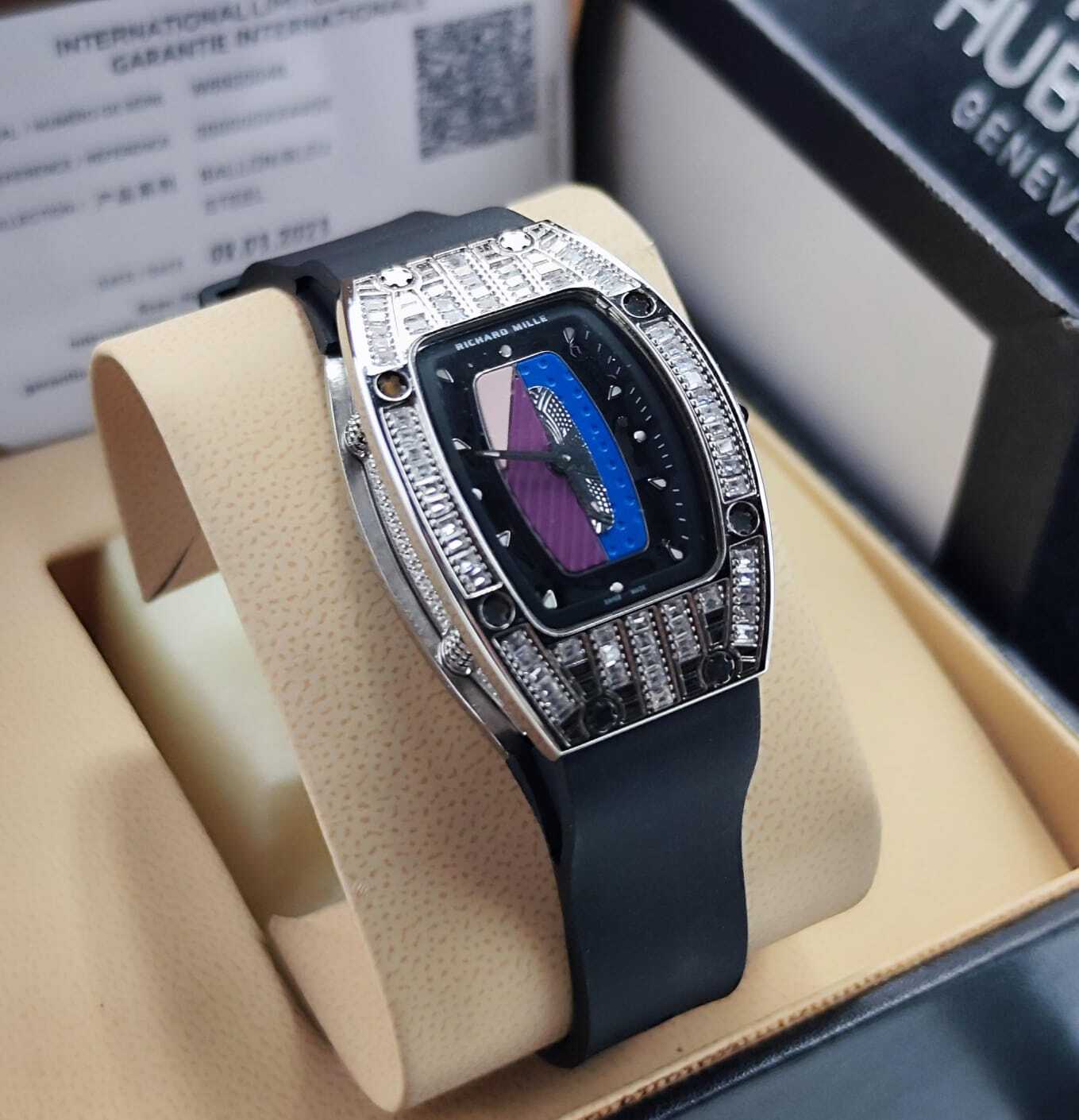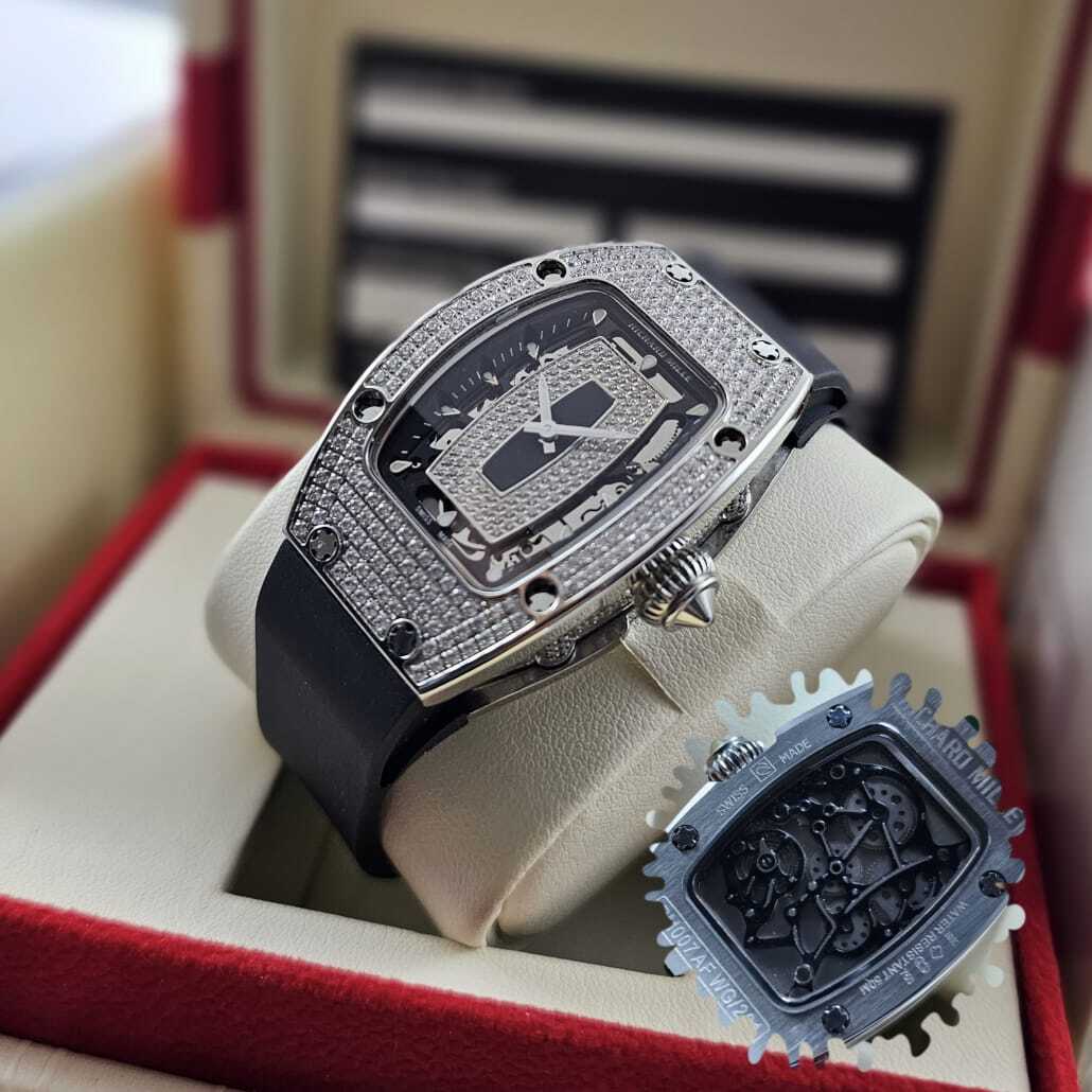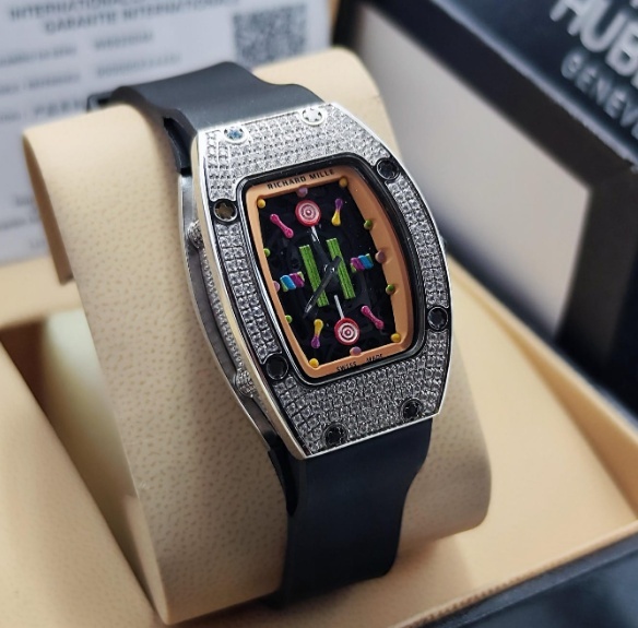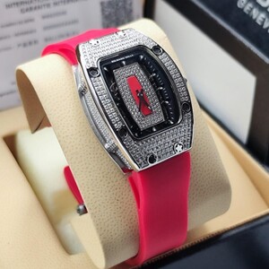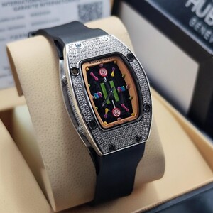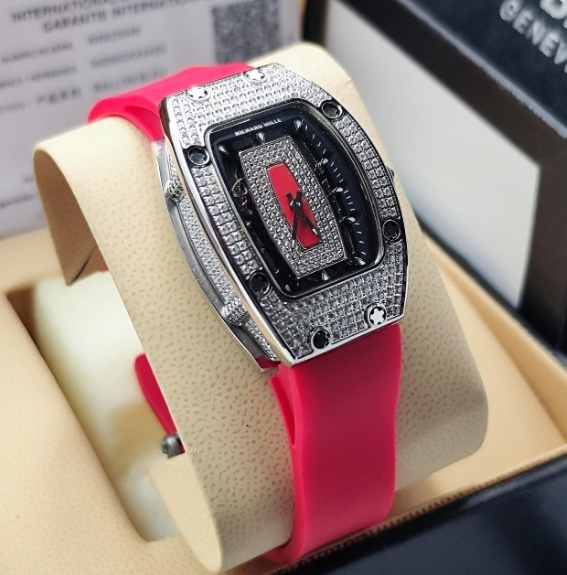 استمتع بإطلالة فريدة مع ساعة ريتشارد ميل الفاخرة، المصممة لمحبي التميز والأناقة الراقية. إطار براق مع تصميم جريء يجمع بين اللمسات العصرية والكلاسيكية. تأتي بميناء أسود فاخر مع تفاصيل بارزة ولمسات بcolor الأحمر، وسوار سيليكون مريح
