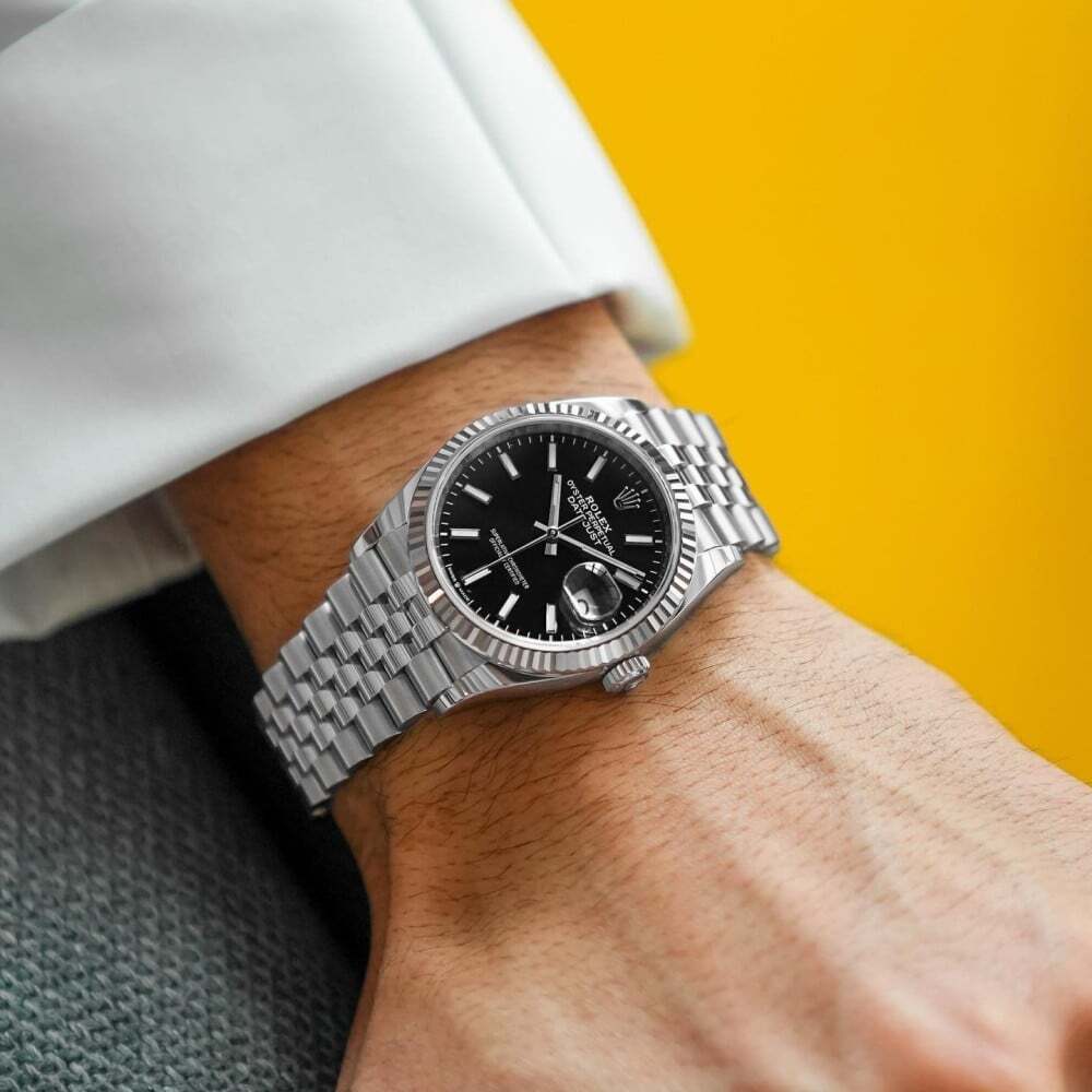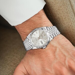 ساعة رولكس ديت جست (Datejust) بتصميم يجمع بين الفخامة والمتانة. تعمل بمكينة أوتوماتيك دقيقة وإطار مسنن يضفي لمسة مميزة. مصنوعة من ستانلس ستيل مقاوم للصدأ في الهيكل والحزام لضمان الجودة والصلابة. بجودة درجة أولى كوبي ون، تقدم تجربة استثنائية.