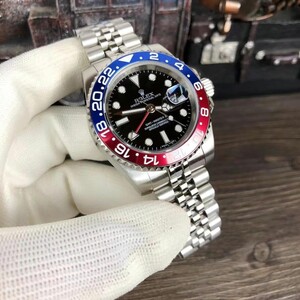ساعة رولكس جي إم تي ماستر 2 (Rolex GMT Master II) موديل بيبسي الأكثر طلباً عالميًا. تعمل بمكينة أوتوماتيك بجودة هاي كواليتي، مع قطر 40 مم وسوار من الستيل المتين او النحيف. واحدة من أشهر وأكثر ساعات رولكس مبيعًا بفضل تصميمها الراقي.