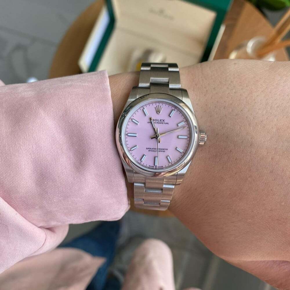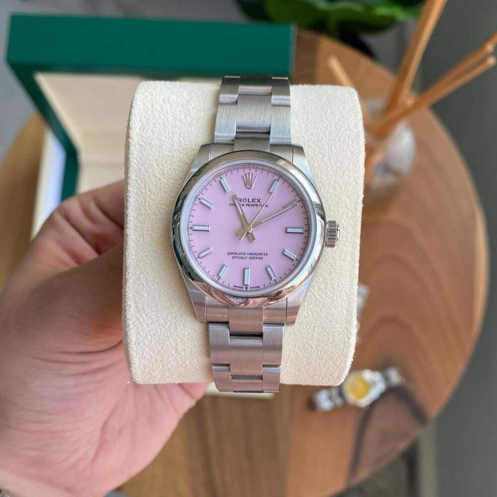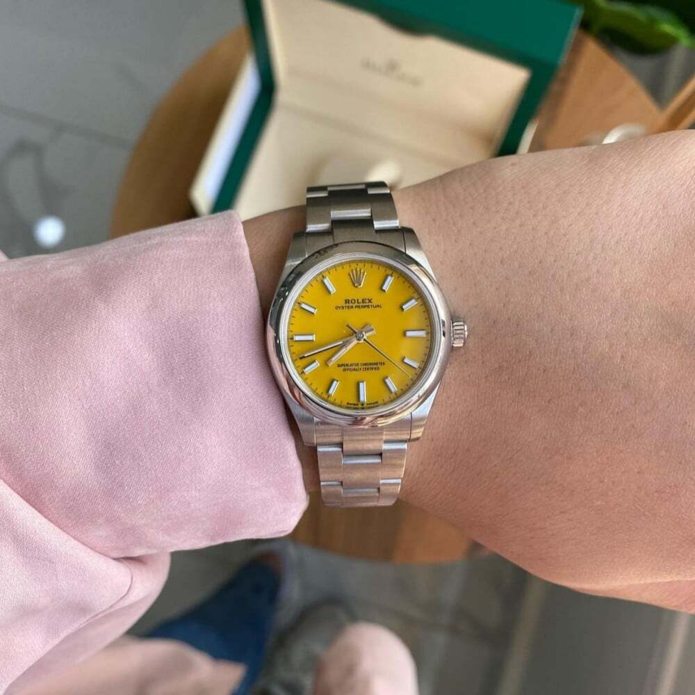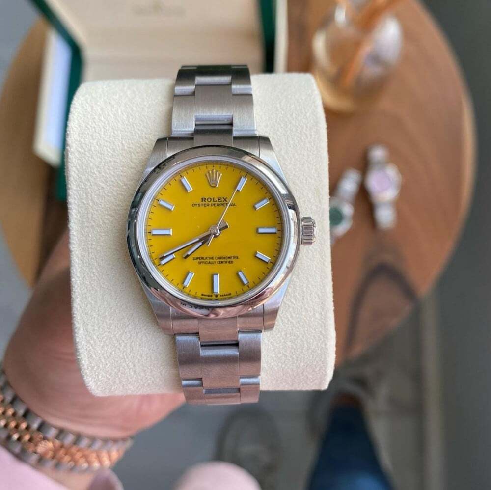 ساعة رولكس أويستر النسائية، ميناء وردي أنيق او اصفر جذاب وسوار ستيل عالي الجودة. تصميم كلاسيكي مثالي لكل المناسبات.