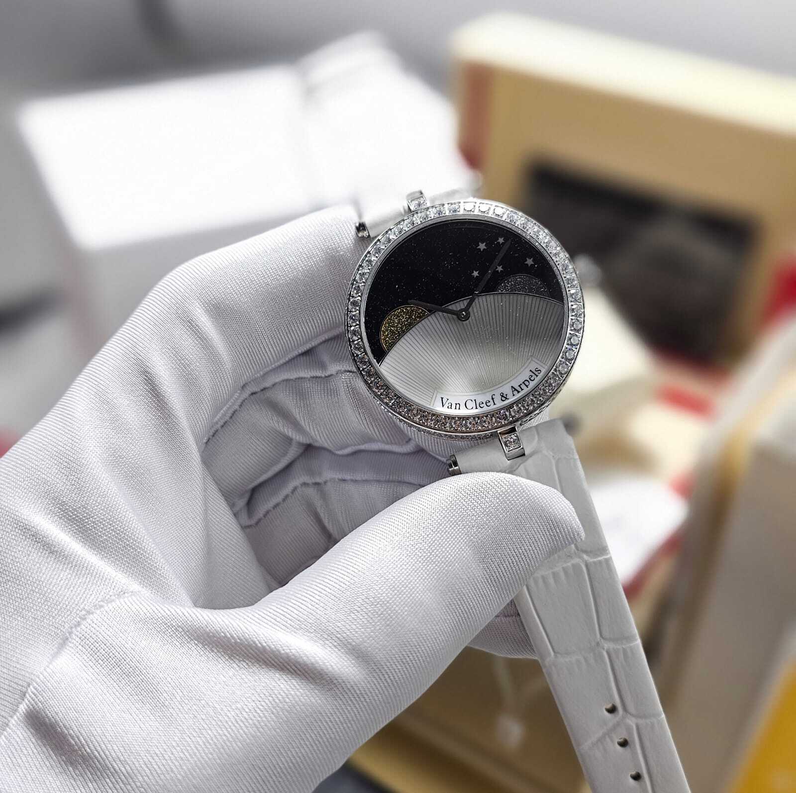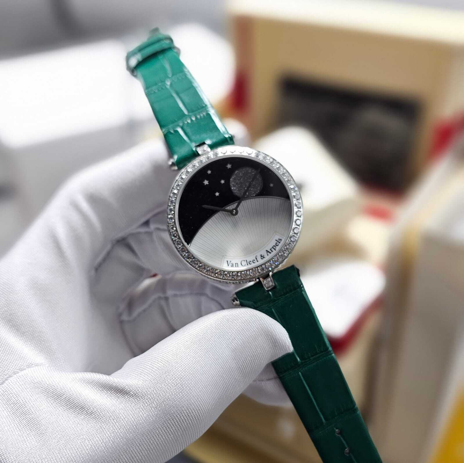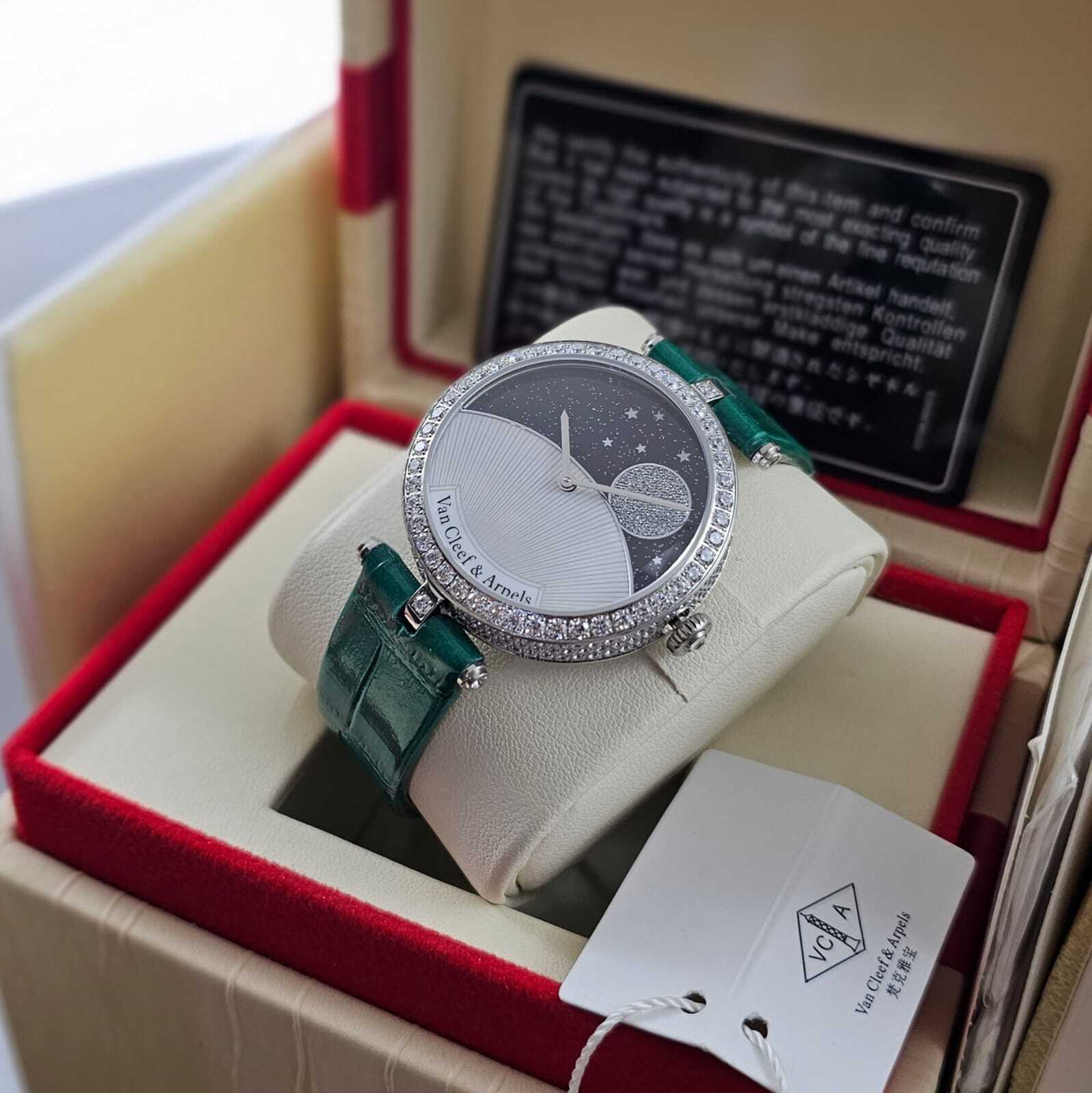 تألقي بالفخامة مع ساعة Van Cleef & Arpels الفريدة، بتصميم راقٍ يعكس سحر السماء المتحركة. تأتي بميناء أنيق مزين بمؤشرات ماسية، وسوار جلدي إيطالي فاخر. مصنوعة بأعلى جودة كوبي ماستر 1، لتحاكي الأصلية بإتقان استثنائي.