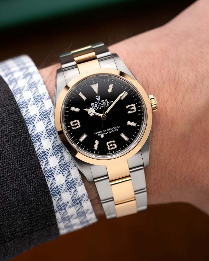 رولكس أويستر بربتشوال، ساعة رجالية متوسطة الحجم بقطر 36 مم. تصميم أنيق يجمع بين الأداء والدقة مع ميناء أسود مميز. تعمل بآلية بطارية موثوقة، مصنوعة من هيكل وسوار ستانلس ستيل عالي الجودة، مما يضفي عليها مظهراً فريداً يناسب مختلف الأذواق.