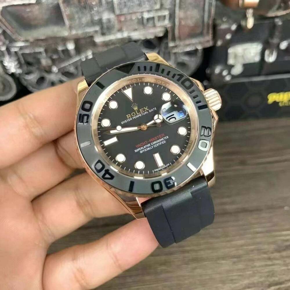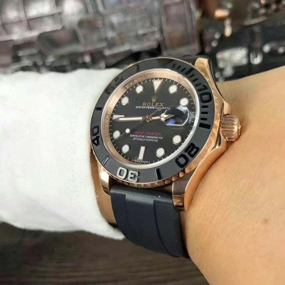 استمتع بالفخامة مع رولكس يخت ماستر حزام مطاطي قولدن روز ، (Rolex Yacht Master One Rubber strap )