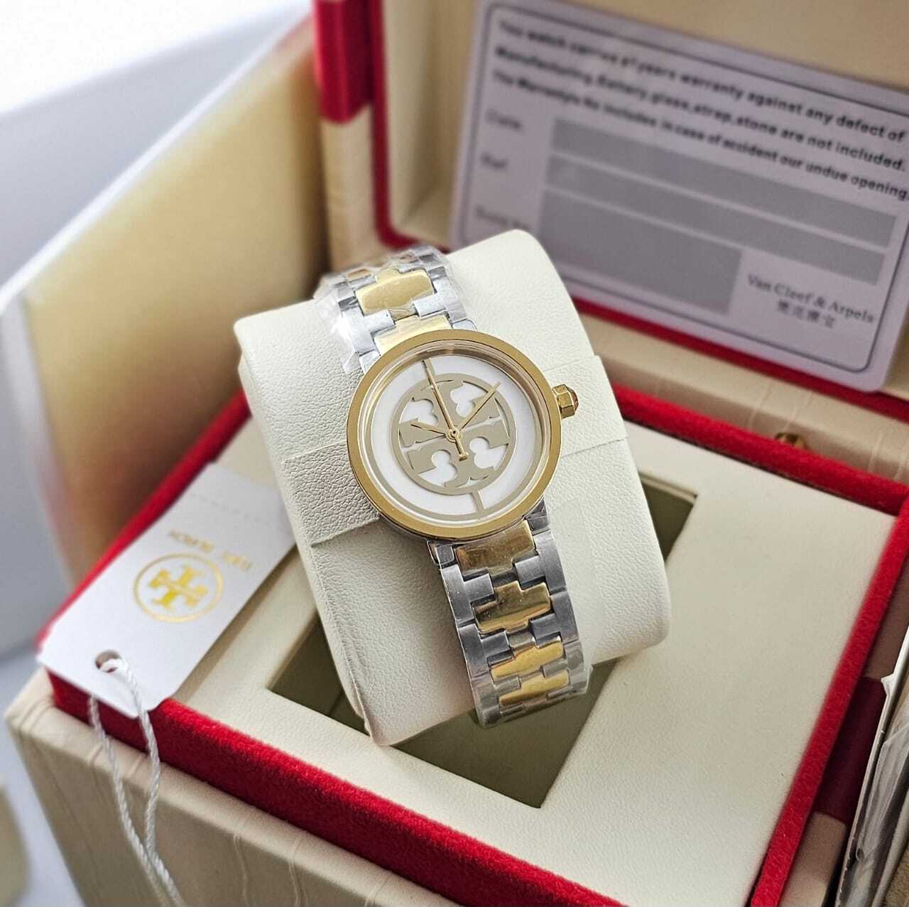 ساعة نسائية أنيقة بتصميم فاخر يجمع بين الستانلس ستيل والذهب، تتميز بميناء مفتوح مع شعار جذاب يضيف لمسة راقية. تعمل بحركة كوارتز (بطارية) لسهولة الاستخدام ودقة التوقيت. تصميم عصري يلائم جميع الإطلالات. جودة كوبي ون عالية وتأتي مع علبة وإكسس