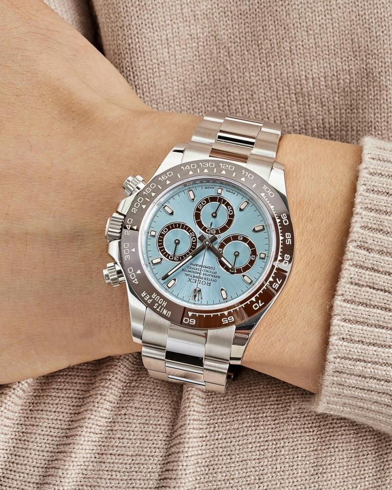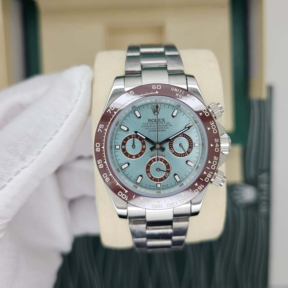 ساعة رولكس دايتونا الرجالية بتصميم فاخر ومتين. تتميز بمكينة تعمل بالبطارية ونظام كرونوغراف (ستوب واتش) عالي الدقة. إطار الساعة مصنوع من السيراميك الأنيق، مع حزام من الستانلس ستيل الفاخر. الساعة تأتي بمقاس قطر 40 ملم.