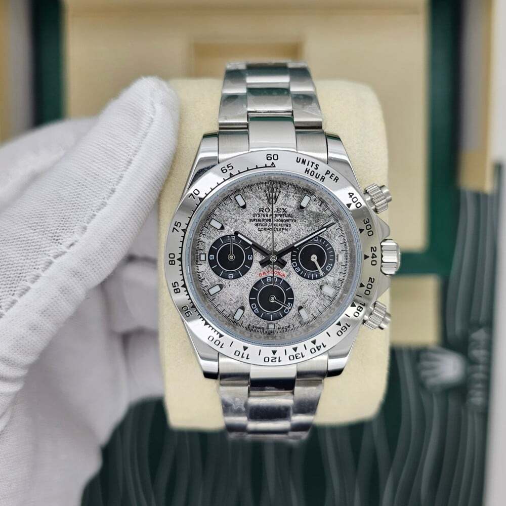 ساعة رولكس دايتونا الرجالية تجمع بين الأداء العملي والأناقة، مزودة بمكينة بطارية ونظام كرونوغراف ستوب واتش. تأتي بقطر 40 ملم وحزام ستيل مقاوم ومتين. تصميم فاخر يلبي تطلعات عشاق الساعات الكلاسيكية.