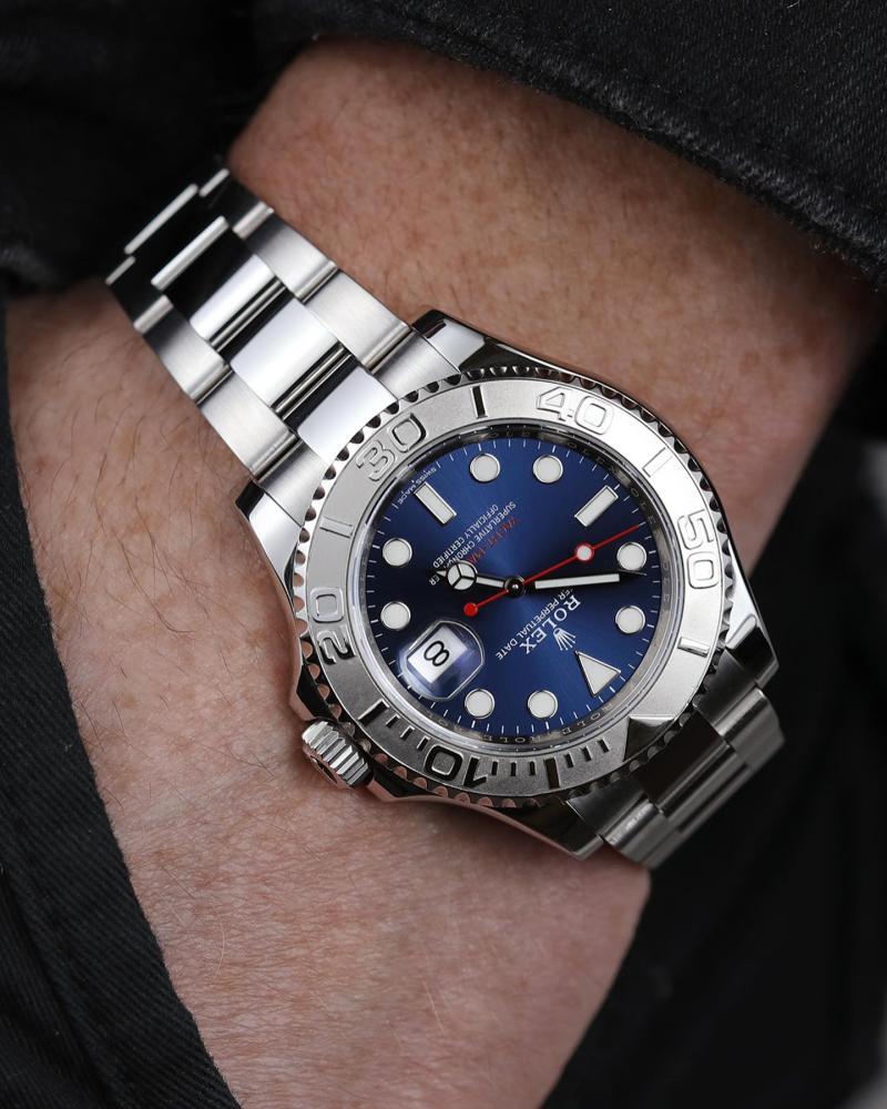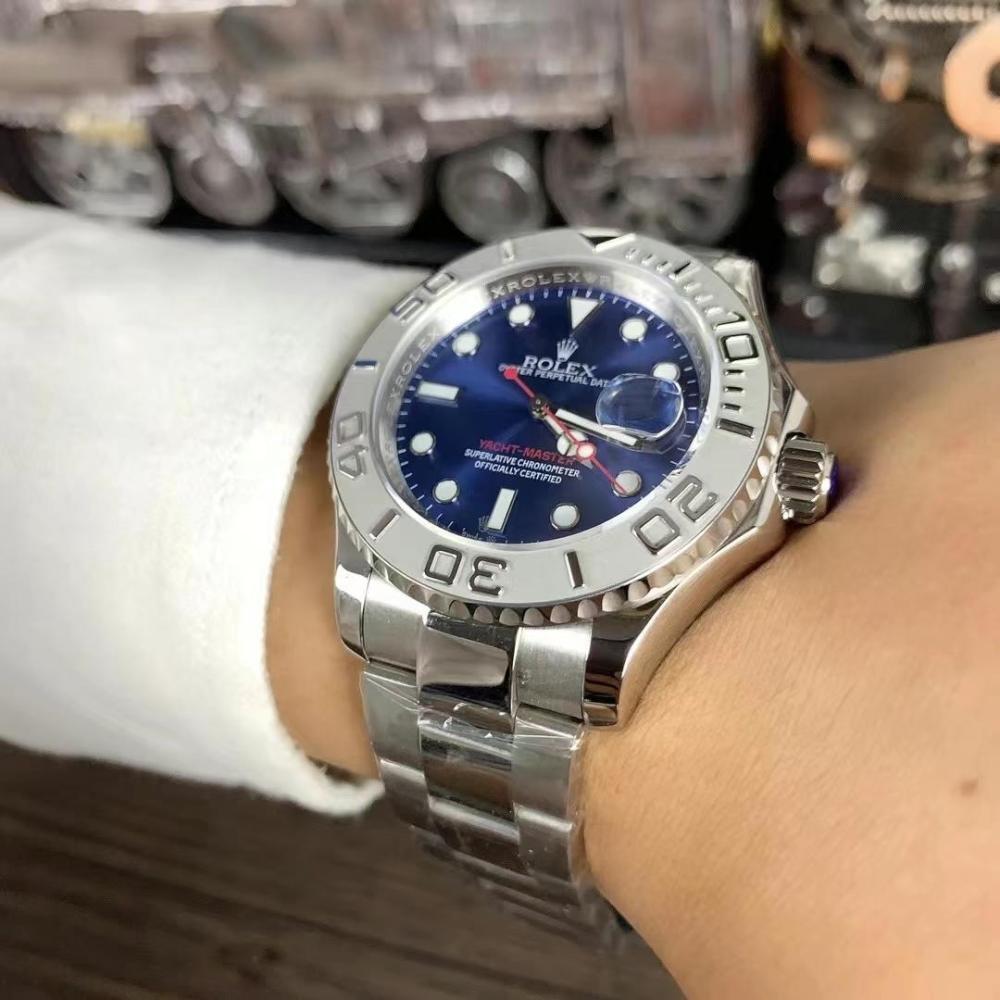 ساعة رولكس يخت ماستر ون بميناء كحلي مميز ومكينة أوتوماتيك عالية الجودة. مؤشر بلون البرتقالي . قطرها 40 مم مع نافذة تاريخ وحزام من الاستيل المتين. ، تجمع بين التصميم الأنيق والأداء المميز.