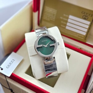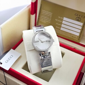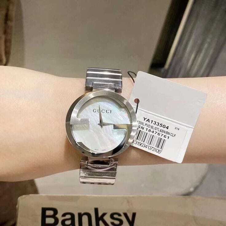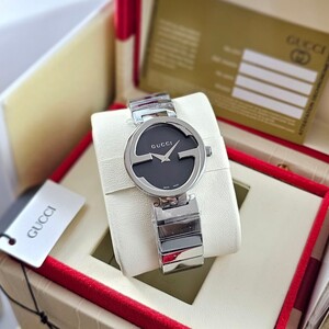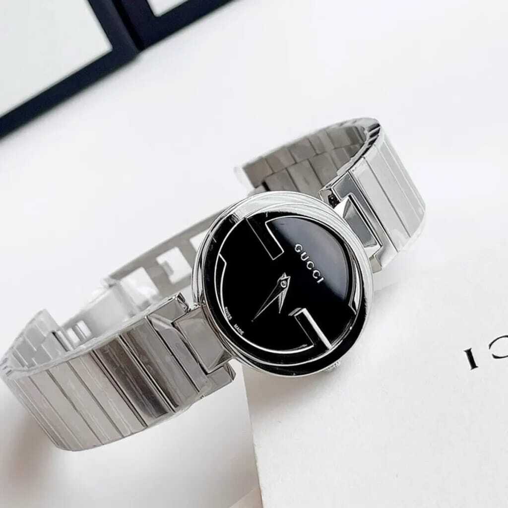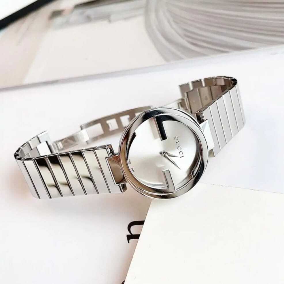 جديد الساعات النسائي من ماركه غوتشي نسائي موديل نسأئي سالستيل ستانلس ستيل بلون سلفر انترلو كينغ جي كوارتز عليها