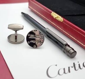 طقم كارتير الفاخر موديل سانتوس النحيف، يجمع بين الأناقة والرقي. قلم بتصميم انسيابي ذهبي فاخر مع كبك مميز يحمل شعار كارتير الأيقوني. إضافة مثالية لأصحاب الذوق الرفيع، ولمسة راقية تعكس الفخامة في كل تفصيلة.