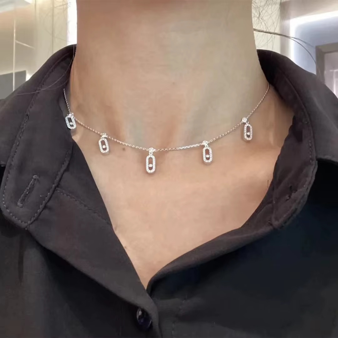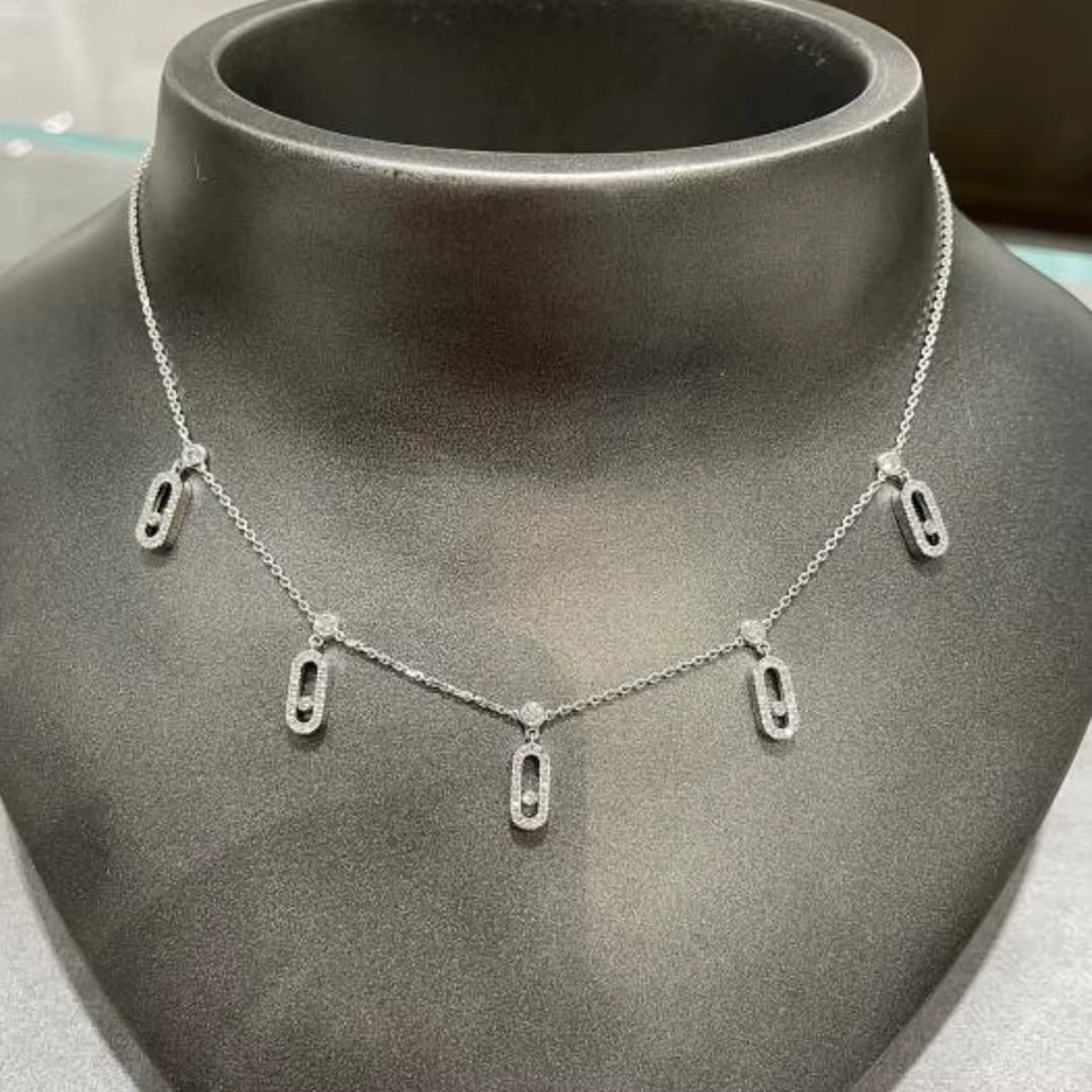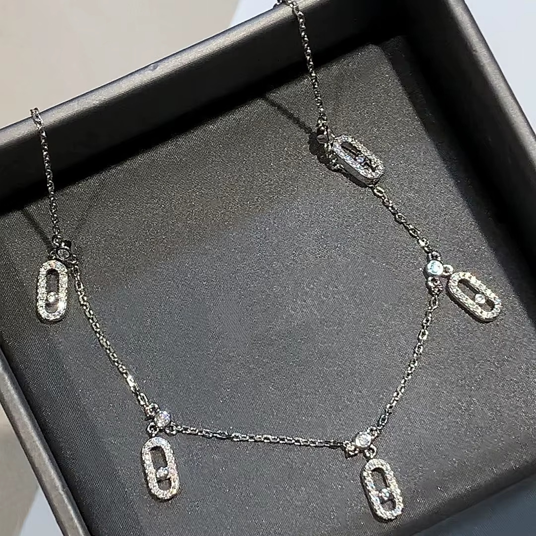 قلادة نسائية راقية مصنوعة من الفضة الإسترليني عيار 925، بتصميم ناعم يضم 5 تعليقات مرصعة بزركون فاخر تمنحك لمعانًا مشابهًا لبريق الألماس. تتميز القلادة بخطوط بسيطة وأنيقة تجعلها قطعة مثالية للإطلالات اليومية والمناسبات الخاصة.