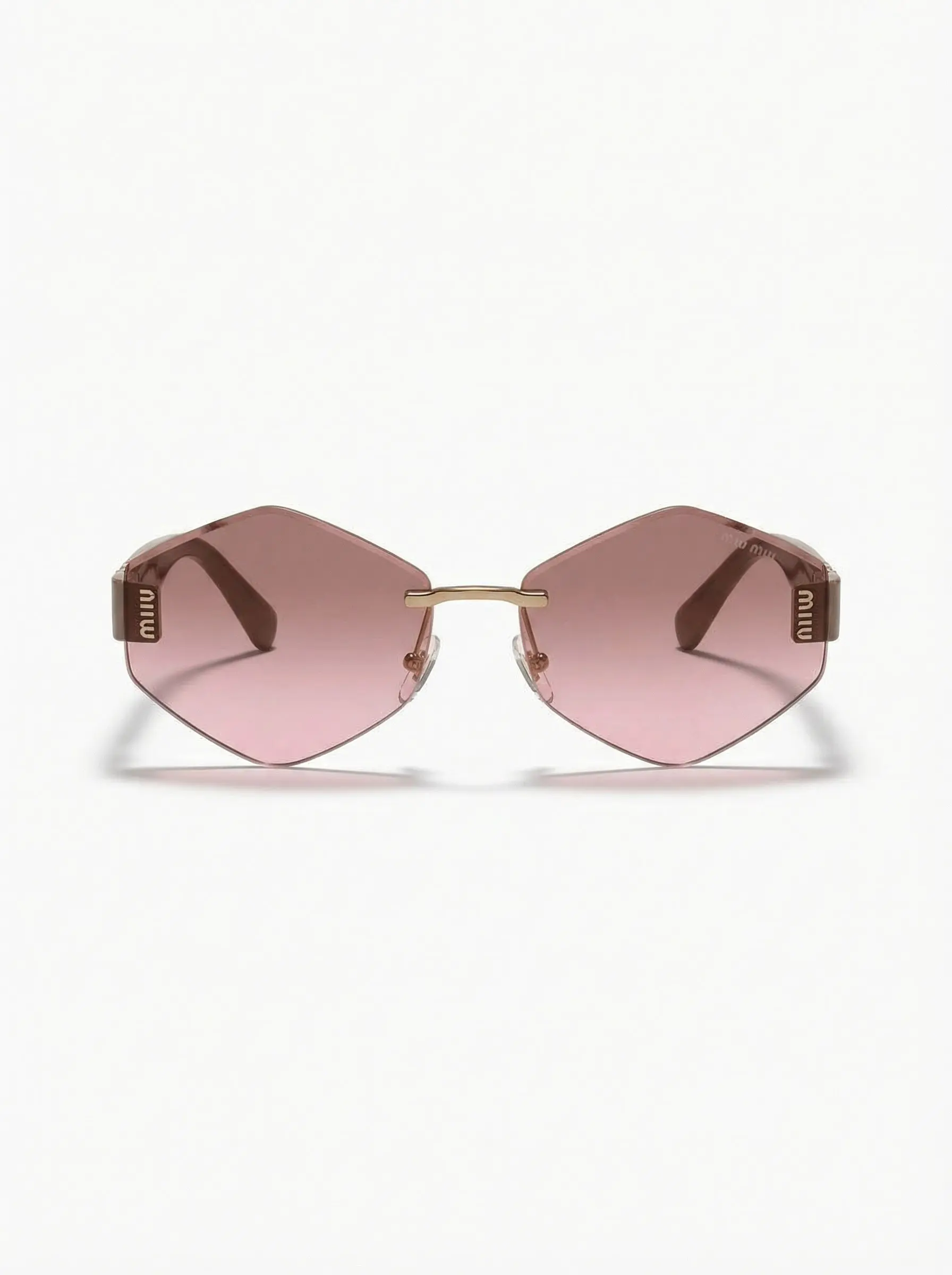 تألقي بأسلوب Miu Miu الفريد مع هذه النظارة الشمسية الأنيقة بإطار ثماني ولون بني جذاب، وعدسات وردية متدرجة تضفي لمسة ساحرة على إطلالتك.