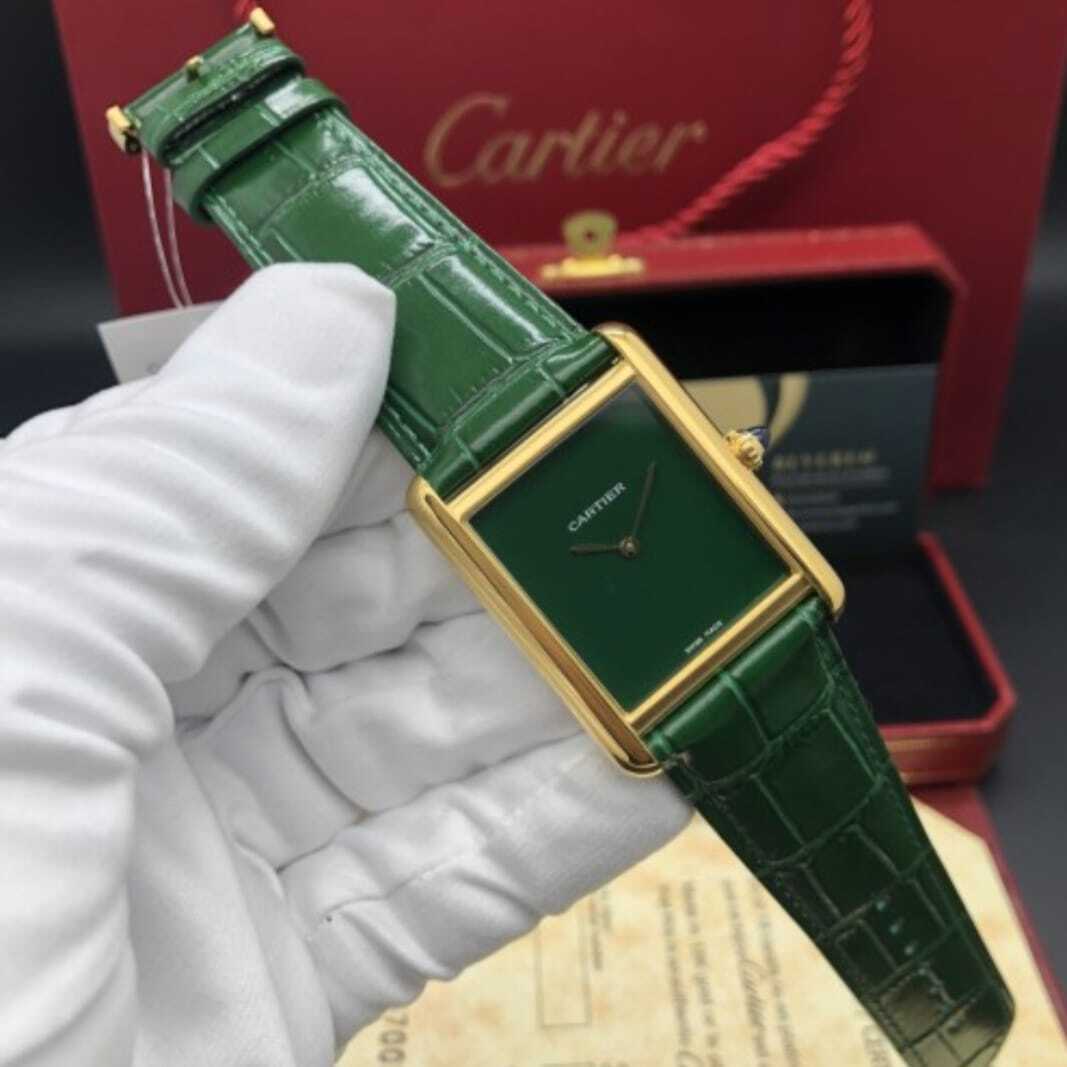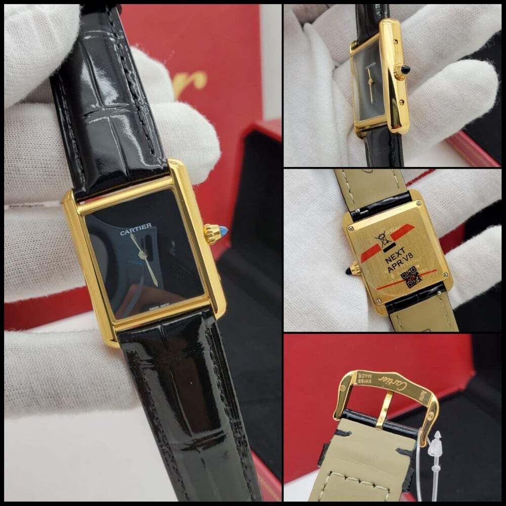 ساعة كارتير تانك مست بحجم وسط (33.7×25.5 مم)، تجمع بين الأناقة والكلاسيكية. إطار ستيل مطلي لون ذهبي ، ميناء أنيق، وسوار جلد فاخر بألوان بني وأسود. تعمل بحركة كوارتز عالية الجودة لتناسب الأذواق الراقية.